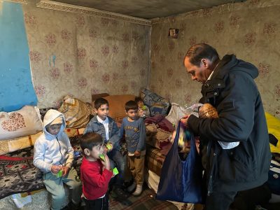Costel was able to go back and sent us an update “I visited again the family with the 6 children, whose infant child, when I visited them for Christmas, I found crying from hunger. In addition to basic food, including much-needed milk, I also brought them a jar of hot soup. In the room where the family lives, being cold, the children warmed their little hands with the pot of boiled soup. Thank you very much! God bless you!